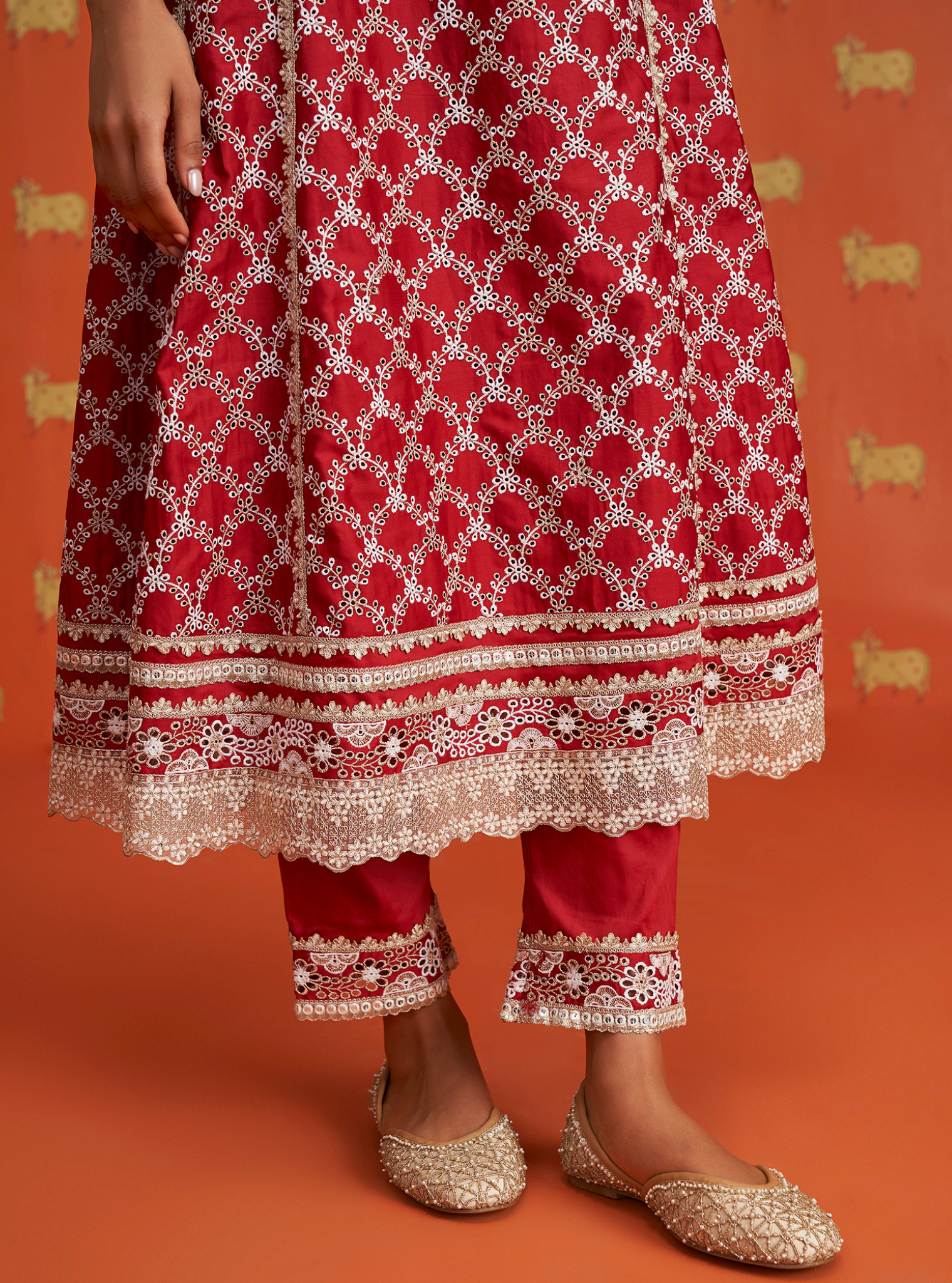 - S / 2XL / Mulmul Chandery Arpa Red Dupatta - Rs. 15,080.00